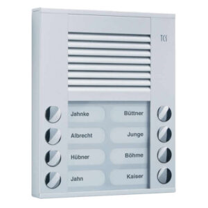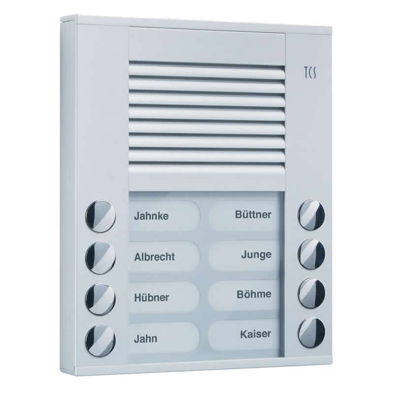 АУДИО таблои TCS су засновани на модерној BUS технологији. Комплетна реализација система се остварује најчешће помоћу само две жице (једне парице). У понуди ТЦС има аудио таблое за све захтеве корисника, од оних за само један објекат (кућа) до великих и комплексних објекта.