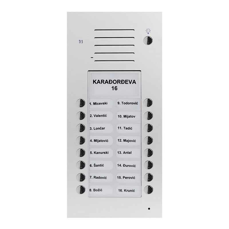 АУДИО таблои Серије А израђени су од елоксираног алуминијума, у потпуном анти-вандал дизајну и представљају одличан избор за системе аудио интерфона за произвољан број корисника.